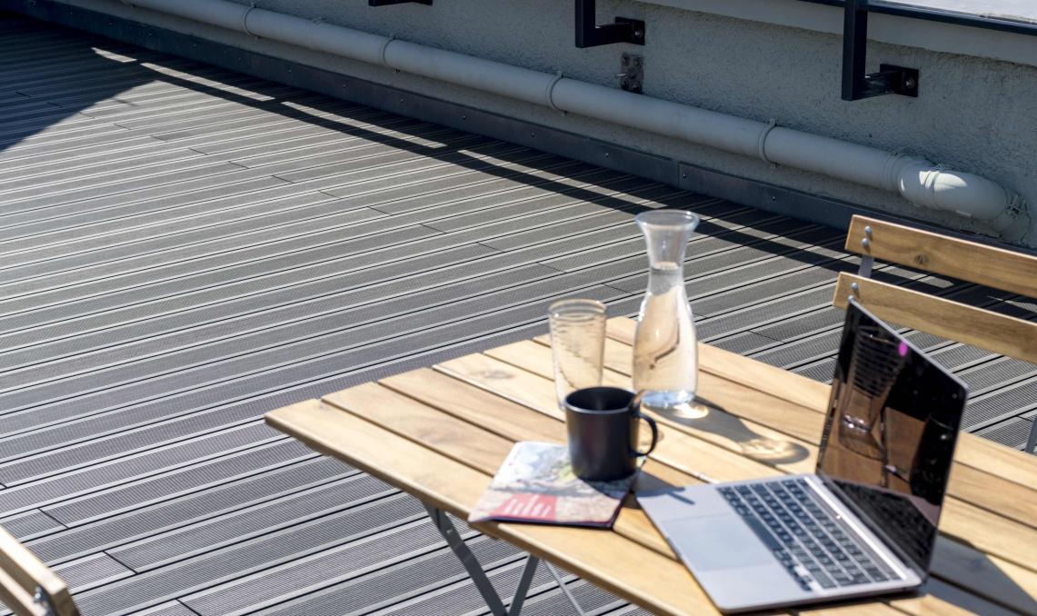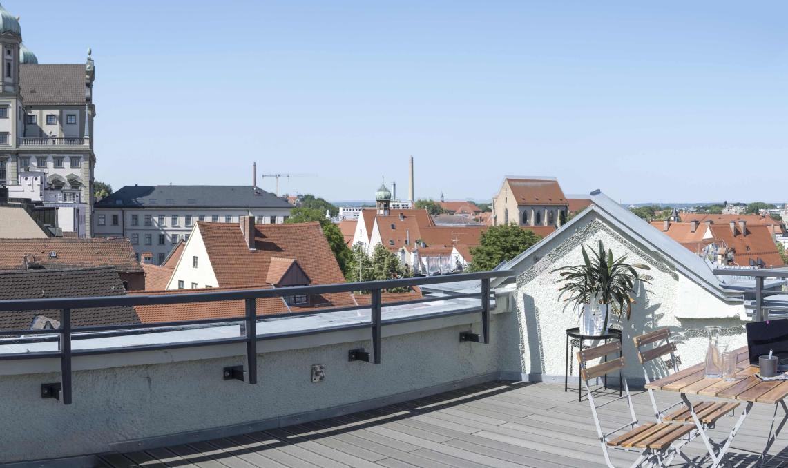Ce superbe appartement au coeur de Augsburg jouit d'une belle terrasse en bois composite Silvadec.
