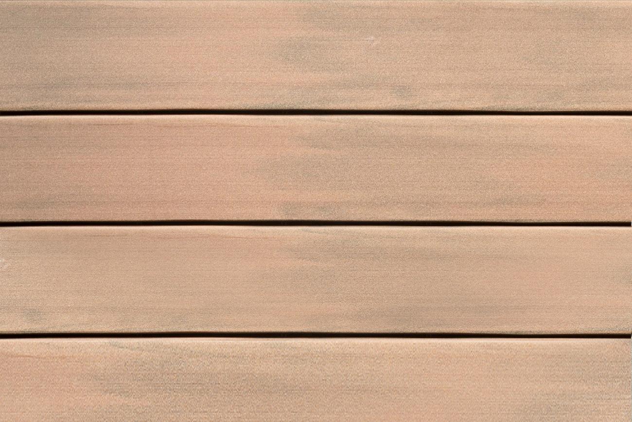 Met haar lichte kleur is de Savanebruine terrasplank van houtcomposiet ideaal om er blootvoets over te lopen. De lichtkleuren terrasplanken zijn immers zeer comfortabel en hun temperatuur onder de zon is vergelijkbaar met die van een exotische houtsoort. Dit zijn ideale planken voor de ruimte rond het zwembad. Ze zijn niet bang van chloor, zout of onderhoudsproducten voor het zwembad en bieden een zeer goede grip voor blote voeten.
