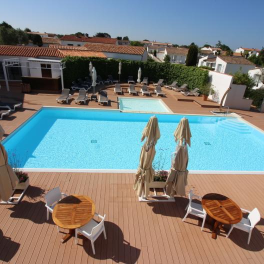 Terrasse en bois composite avec piscine de la Villa Cyrnos en Corse - Aménagement extérieur contemporain avec vue mer et montagne
